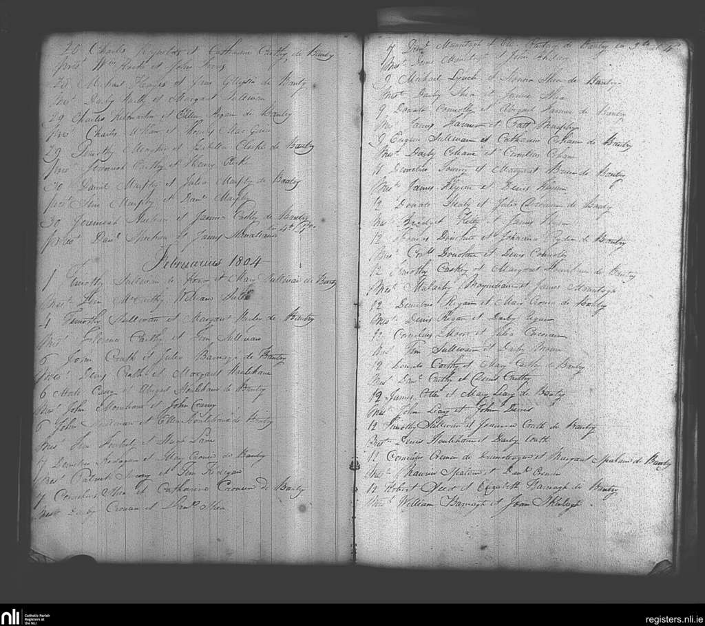 Bantry; County of Cork; Diocese of Cork and Ross. Marriages, Jan. 1804 to Feb. 1804