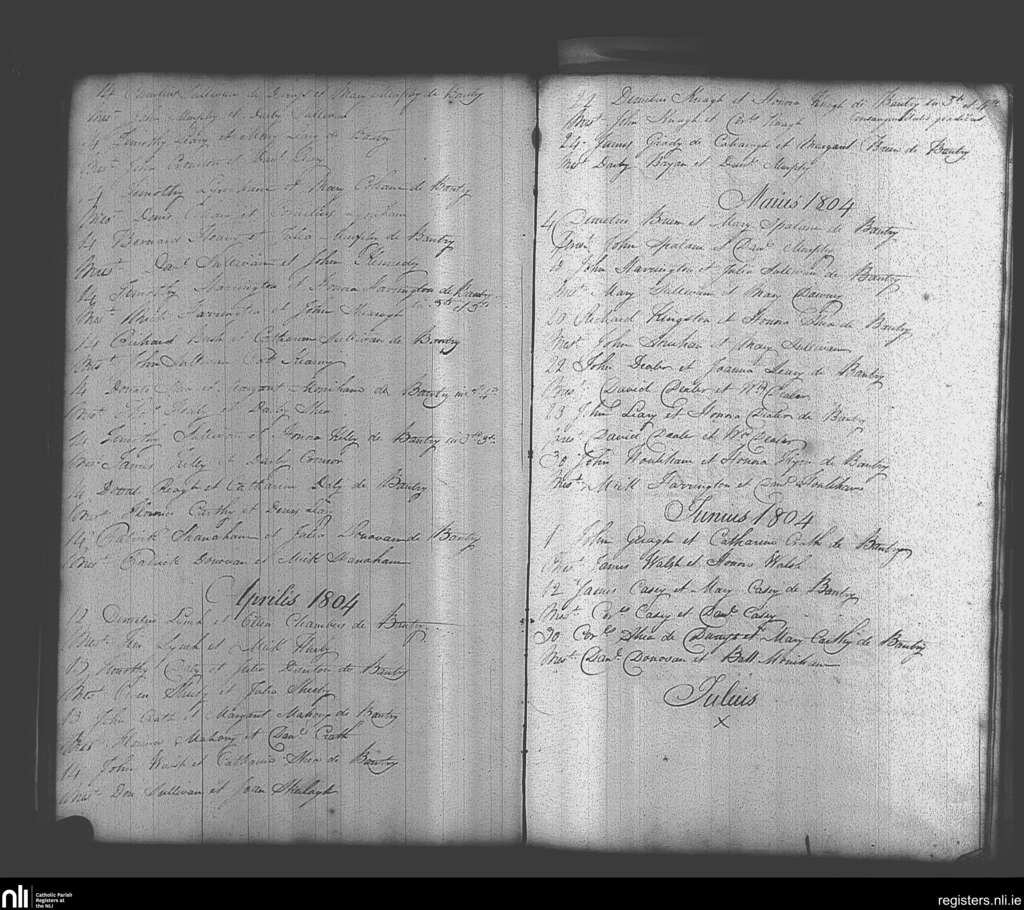 Bantry; County of Cork; Diocese of Cork and Ross. Marriages, Feb. 1804 to July 1804
