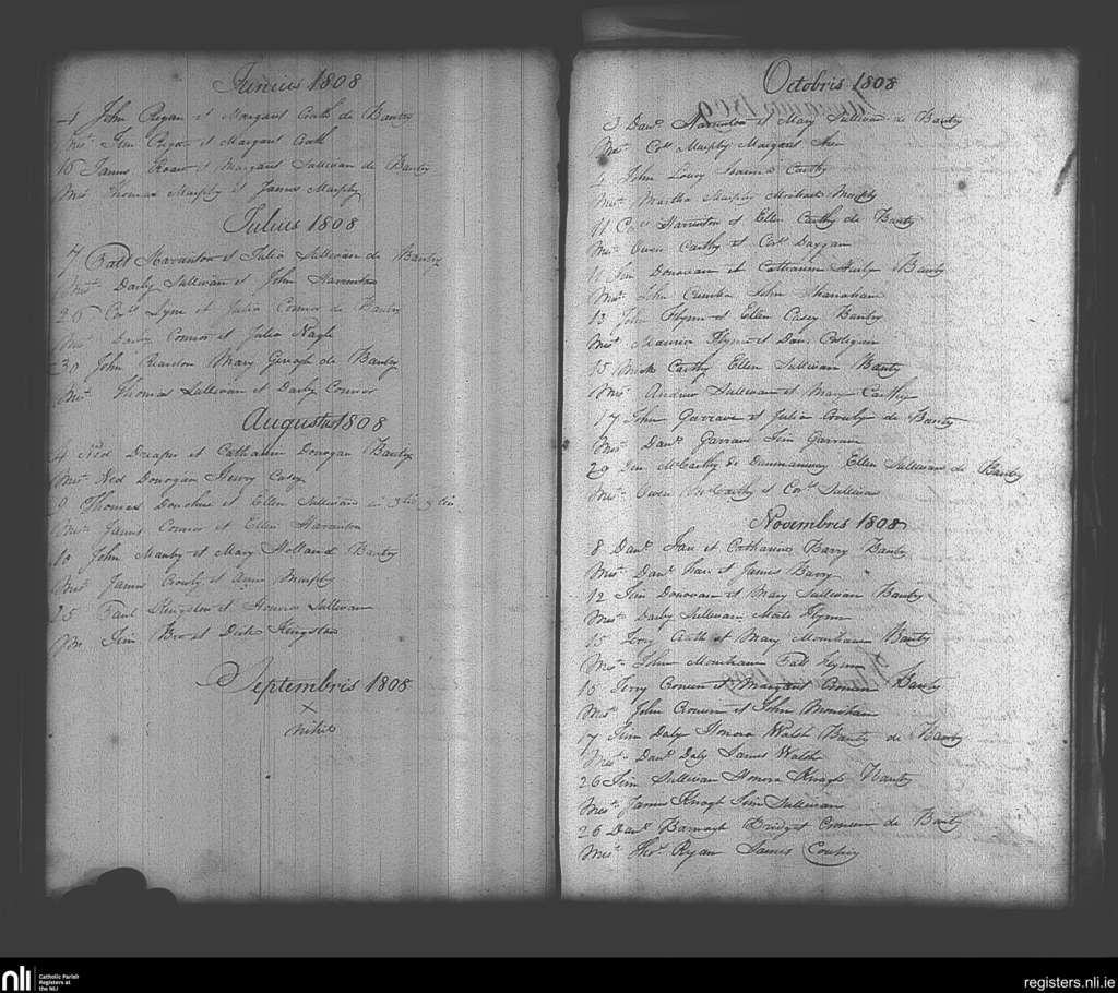 Bantry; County of Cork; Diocese of Cork and Ross. Marriages, June 1808 to Nov. 1808