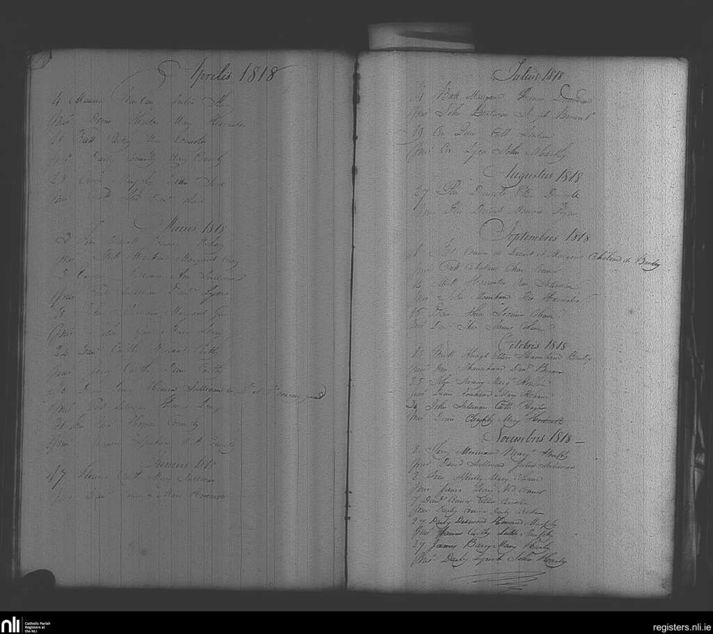 Bantry; County of Cork; Diocese of Cork and Ross. Marriages, Apr. 1818 to Nov. 1818