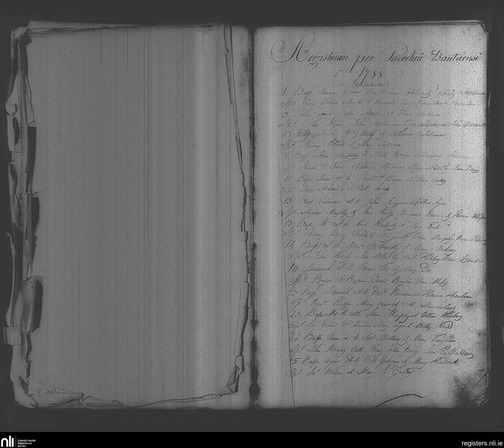 Bantry; County of Cork; Diocese of Cork and Ross. Baptisms, Jan. 1788