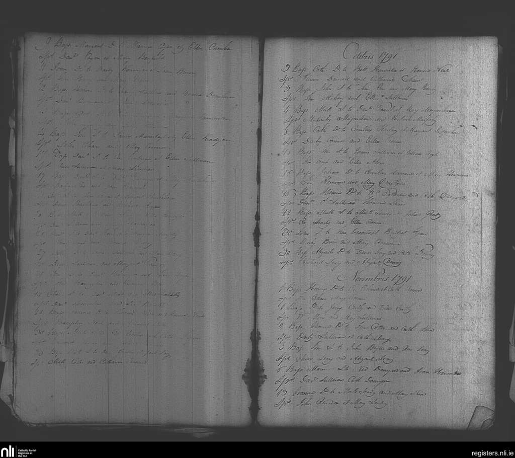 Bantry; County of Cork; Diocese of Cork and Ross. Baptisms, Sep. 1791 to Nov. 1791