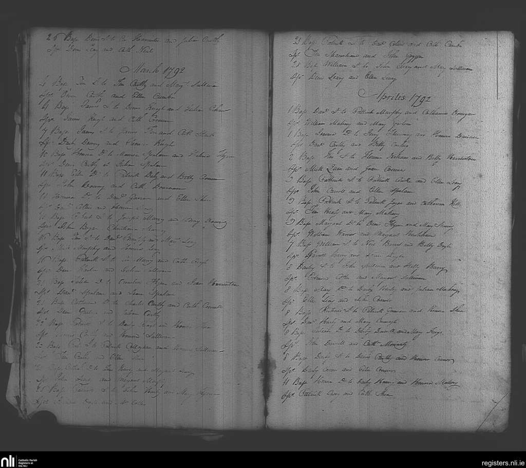 Bantry; County of Cork; Diocese of Cork and Ross. Baptisms, Feb. 1792 to Apr. 1792
