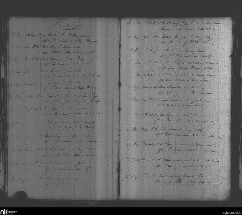 Bantry; County of Cork; Diocese of Cork and Ross. Baptisms, Mar. 1795
