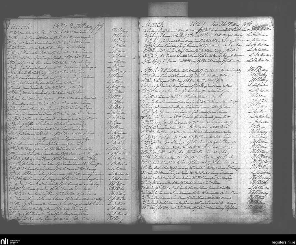 Bantry; County of Cork; Diocese of Cork and Ross. Baptisms, Mar. 1827 to Apr. 1827