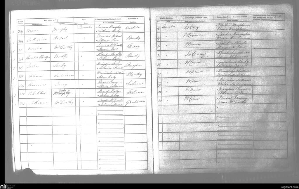 Bantry; County of Cork; Diocese of Cork and Ross. Baptisms, Mar. 1867 to Apr. 1867