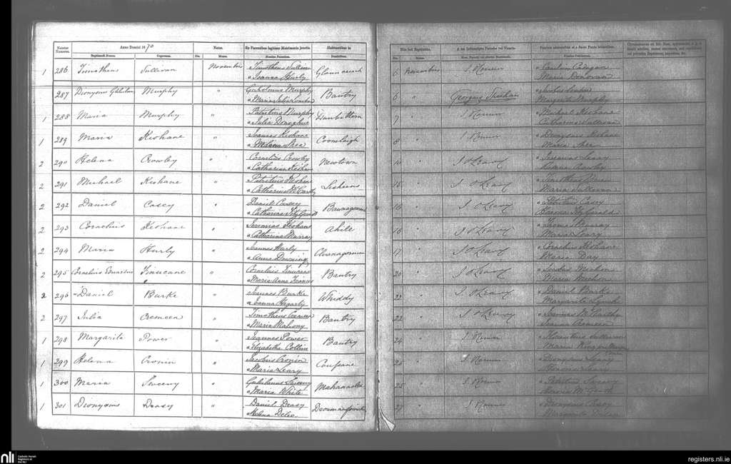 Bantry; County of Cork; Diocese of Cork and Ross. Baptisms, Apr. 1868