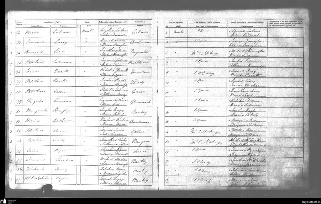 Bantry; County of Cork; Diocese of Cork and Ross. Baptisms, July 1869 to Sep. 1869