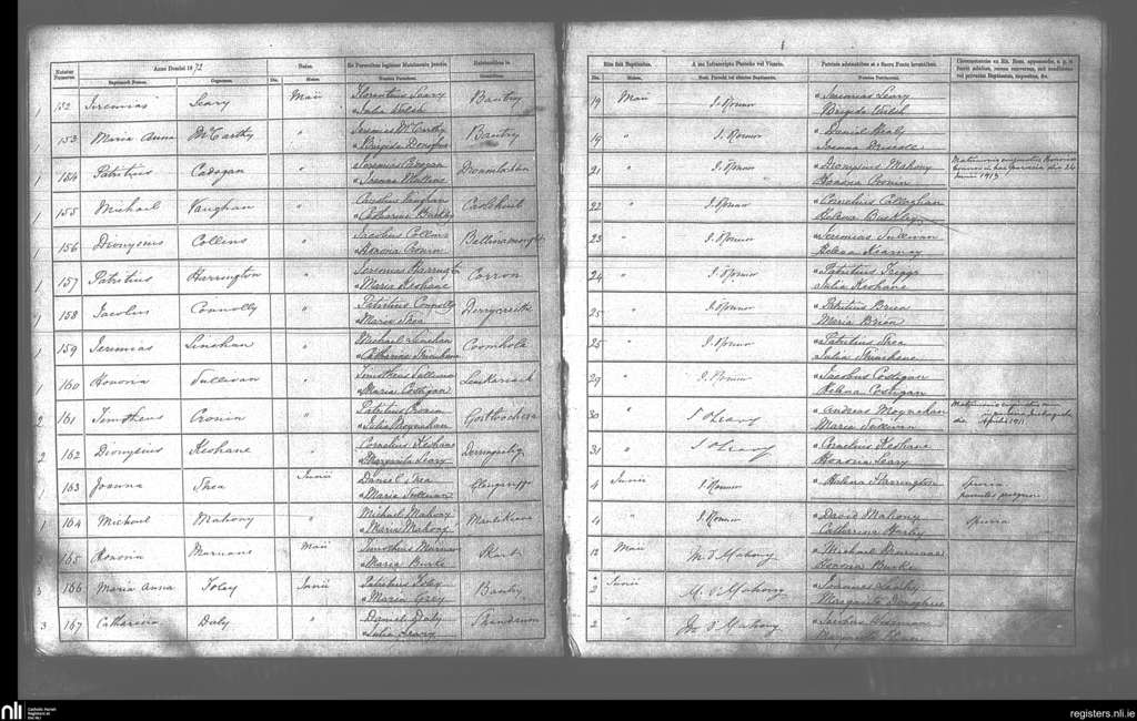 Bantry; County of Cork; Diocese of Cork and Ross. Baptisms, Nov. 1869 to Dec. 1869