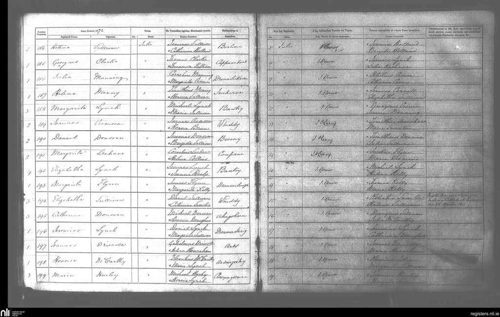 Bantry; County of Cork; Diocese of Cork and Ross. Baptisms, Jan. 1870