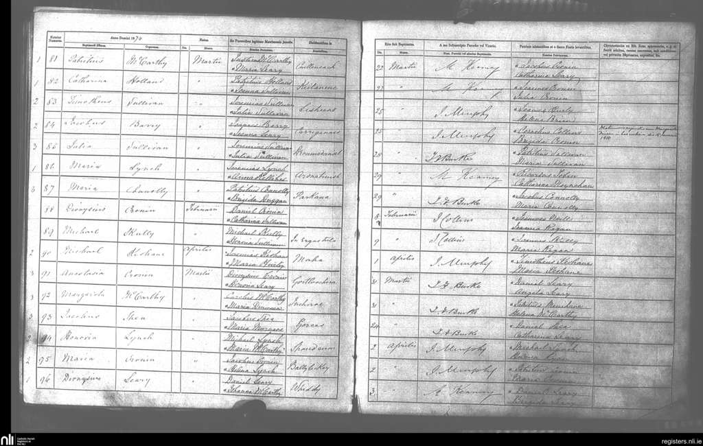 Bantry; County of Cork; Diocese of Cork and Ross. Baptisms, July 1871
