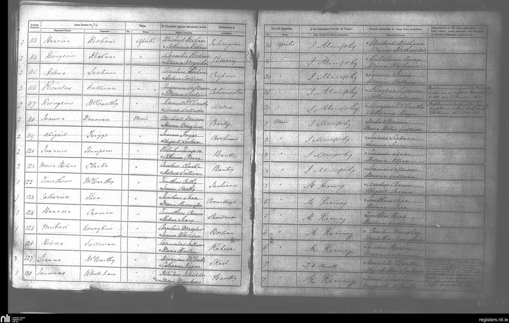 Bantry; County of Cork; Diocese of Cork and Ross. Baptisms, Aug. 1871 to Sep. 1871