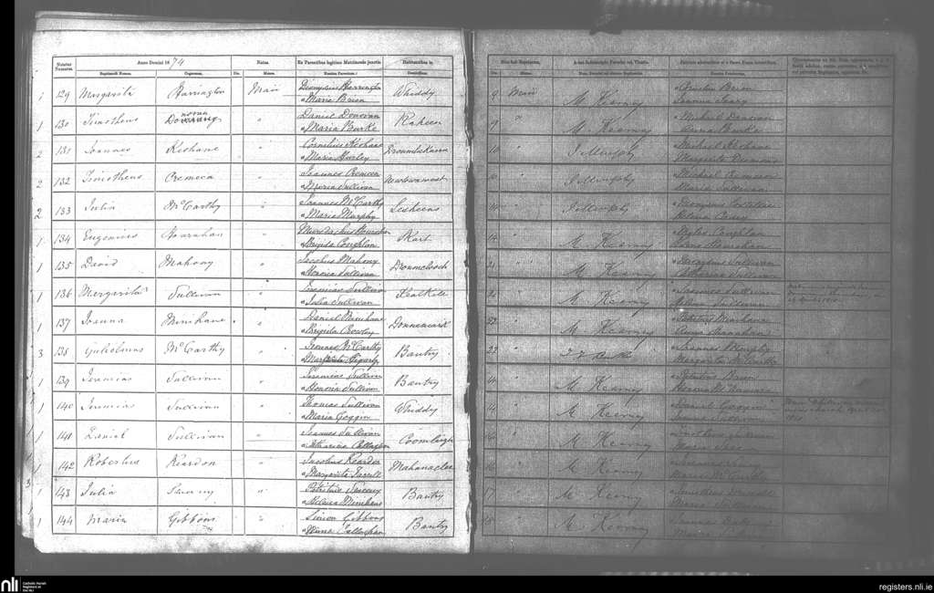 Bantry; County of Cork; Diocese of Cork and Ross. Baptisms, Sep. 1871 to Oct. 1871