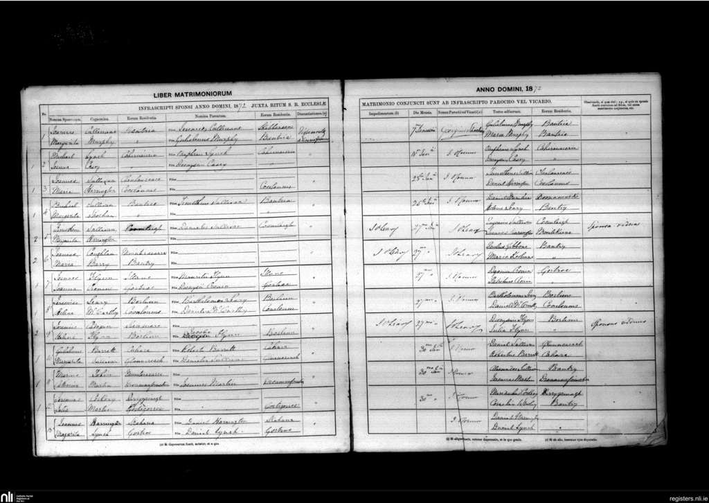 Bantry; County of Cork; Diocese of Cork and Ross. Marriages, Jan. 1872
