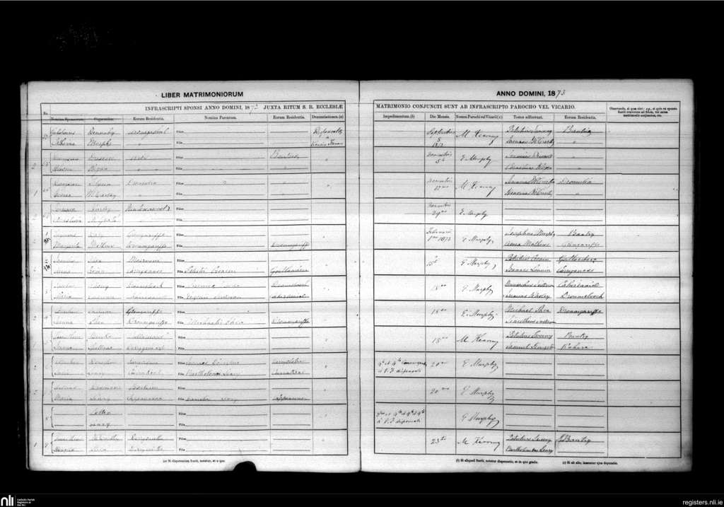 Bantry; County of Cork; Diocese of Cork and Ross. Marriages, Sep. 1872 to Feb. 1873