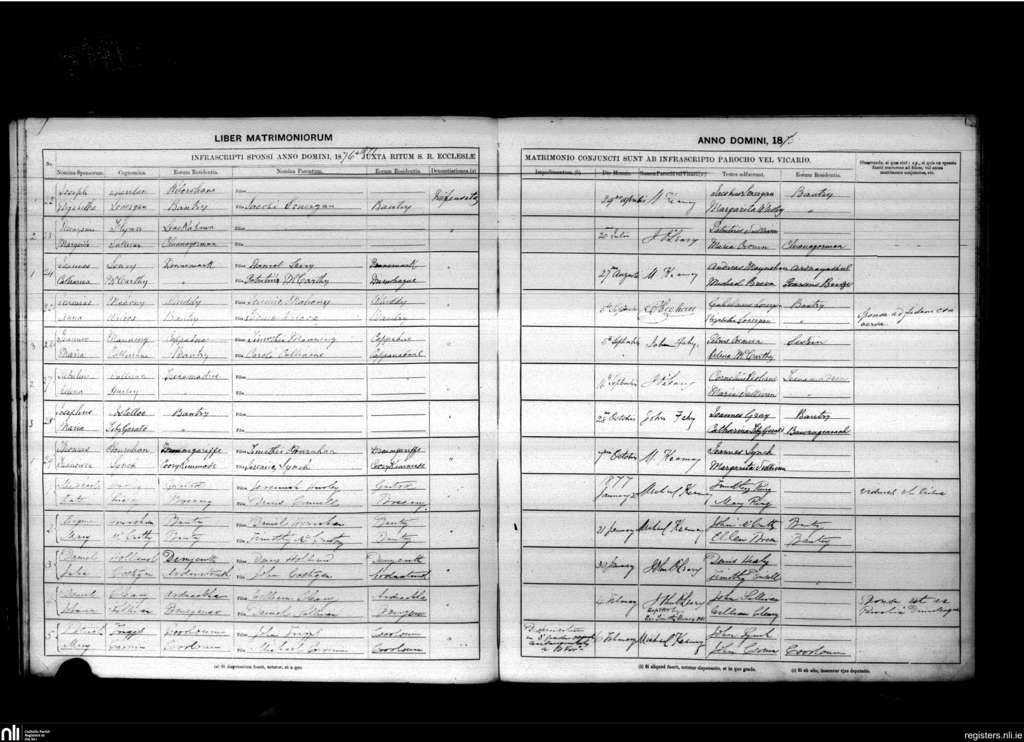 Bantry; County of Cork; Diocese of Cork and Ross. Marriages, Apr. 1876 to Feb. 1877