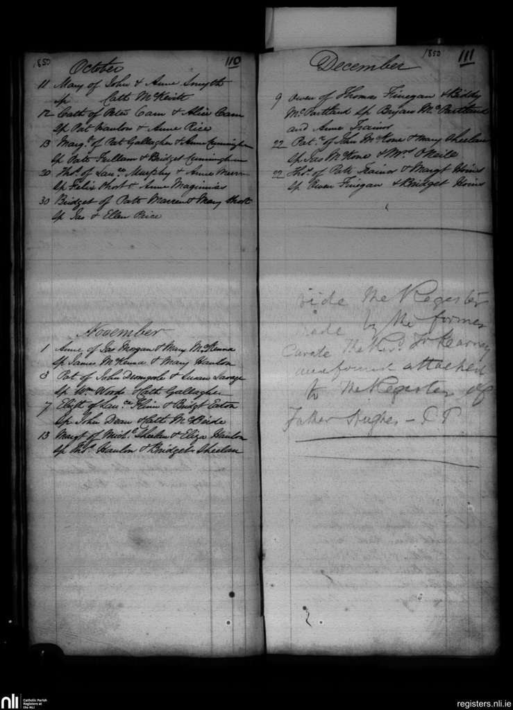 Lordship; County of Louth; Archdiocese of Armagh. Baptisms, Oct. 1850 to Dec. 1850