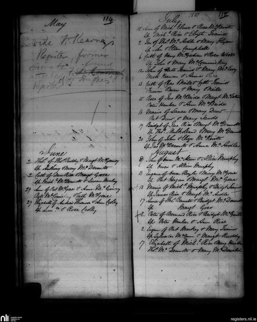 Lordship; County of Louth; Archdiocese of Armagh. Baptisms, May 1851 to Aug. 1851
