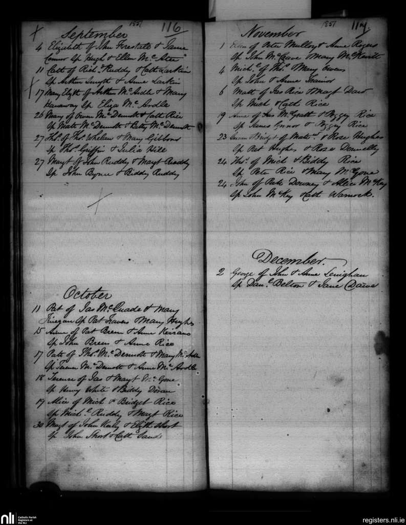 Lordship; County of Louth; Archdiocese of Armagh. Baptisms, Sep. 1851 to Dec. 1851