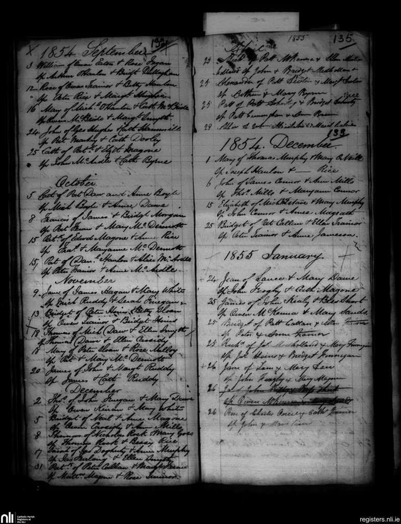 Lordship; County of Louth; Archdiocese of Armagh. Baptisms, Sep. 1854 to Jan. 1855
