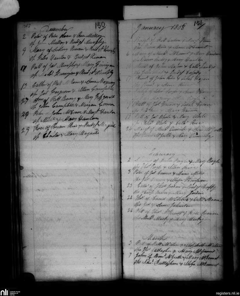 Lordship; County of Louth; Archdiocese of Armagh. Baptisms, Dec. 1857 to Mar. 1858