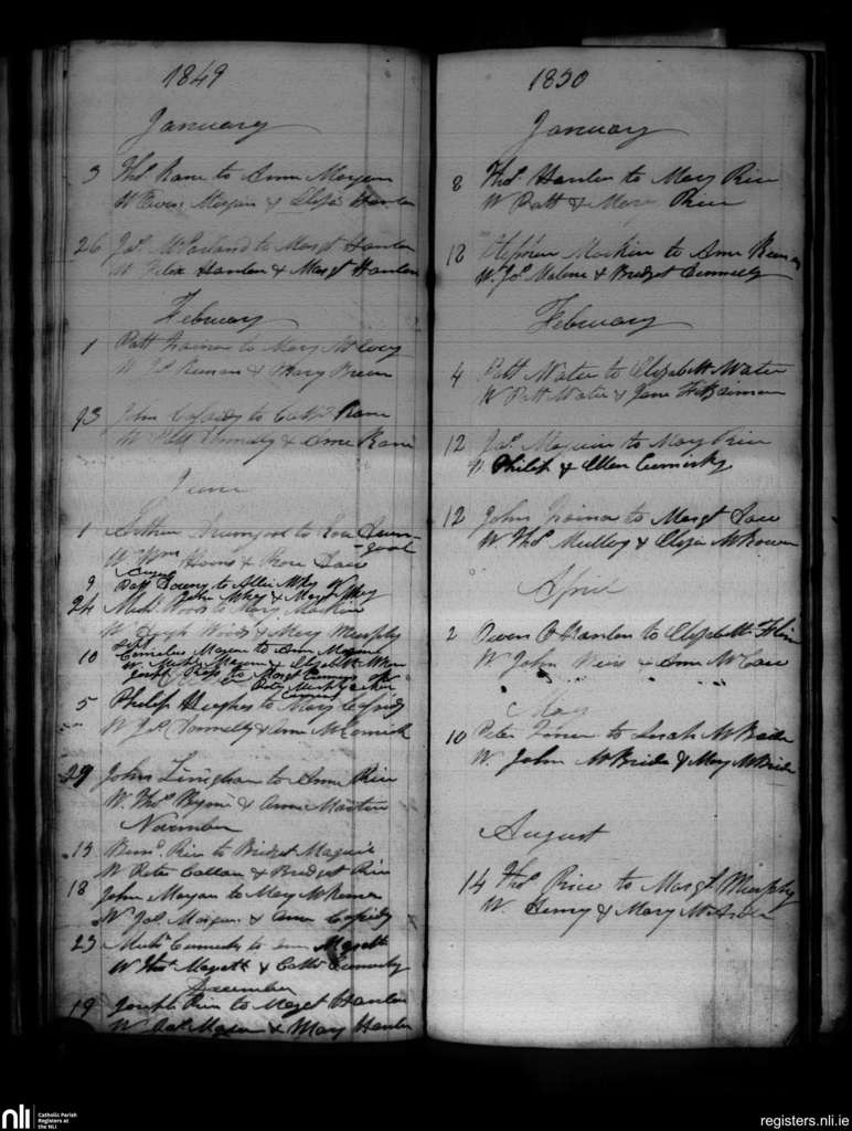 Lordship; County of Louth; Archdiocese of Armagh. Marriages, Jan. 1849 to Aug. 1850
