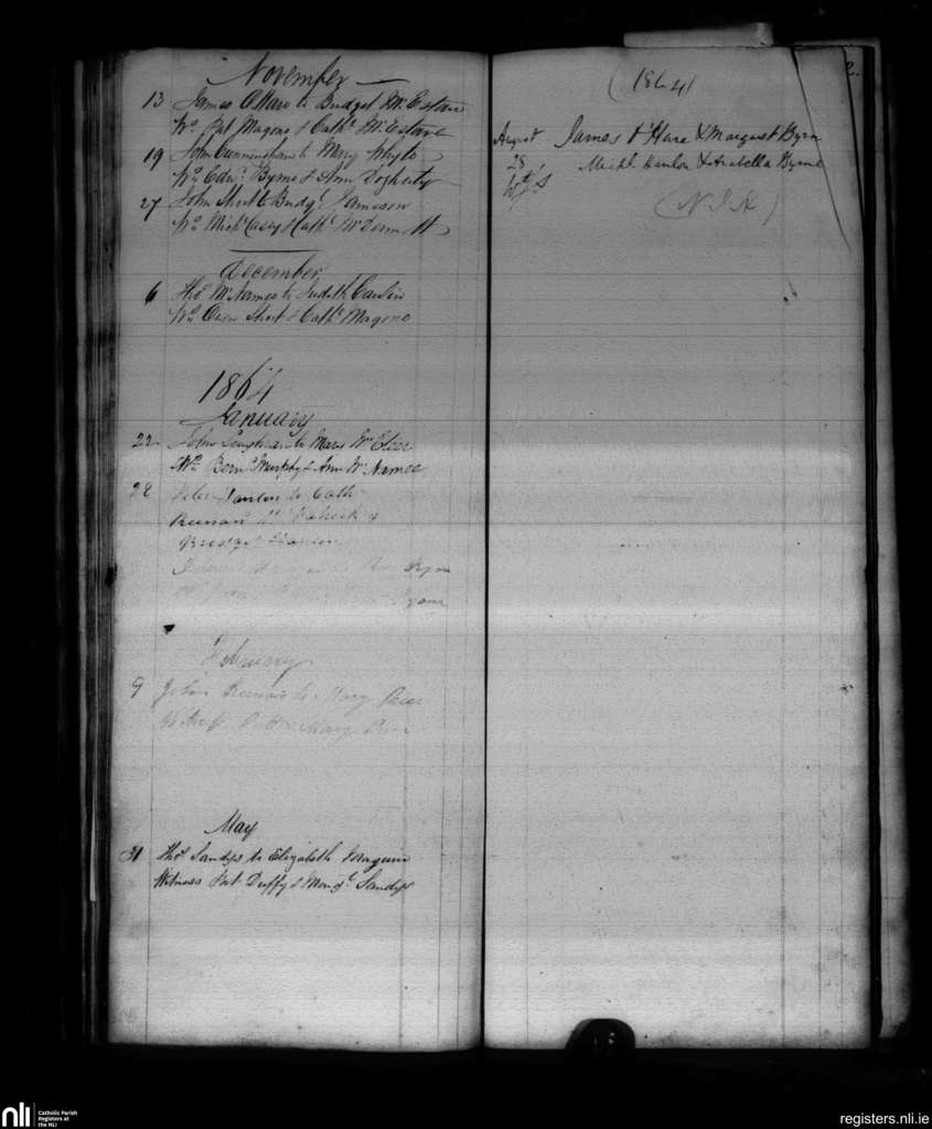 Lordship; County of Louth; Archdiocese of Armagh. Marriages, Nov. 1863 to Aug. 1864