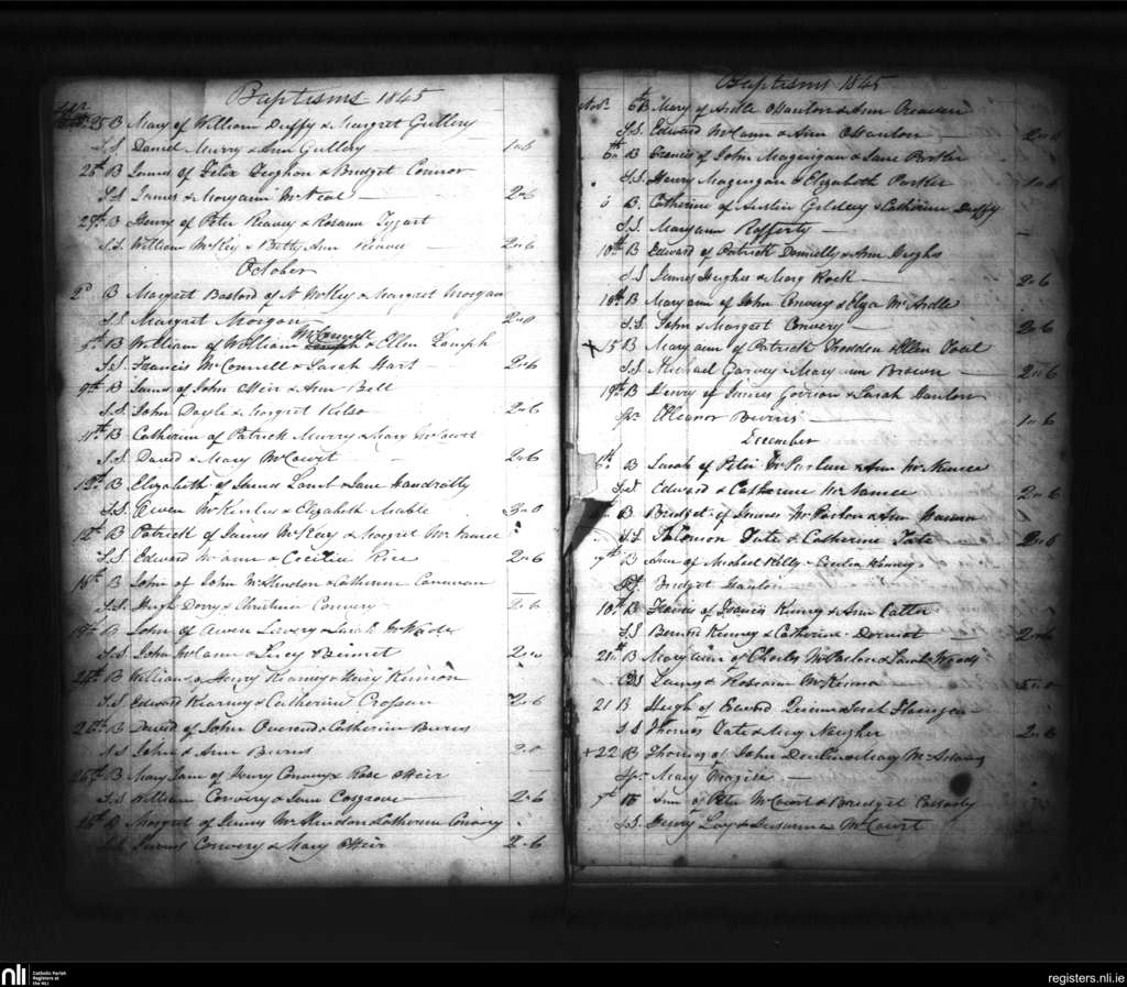 Ballymore and Mullabrack; County of Armagh; Archdiocese of Armagh. Baptisms, Sep. 1845 to Dec. 1845