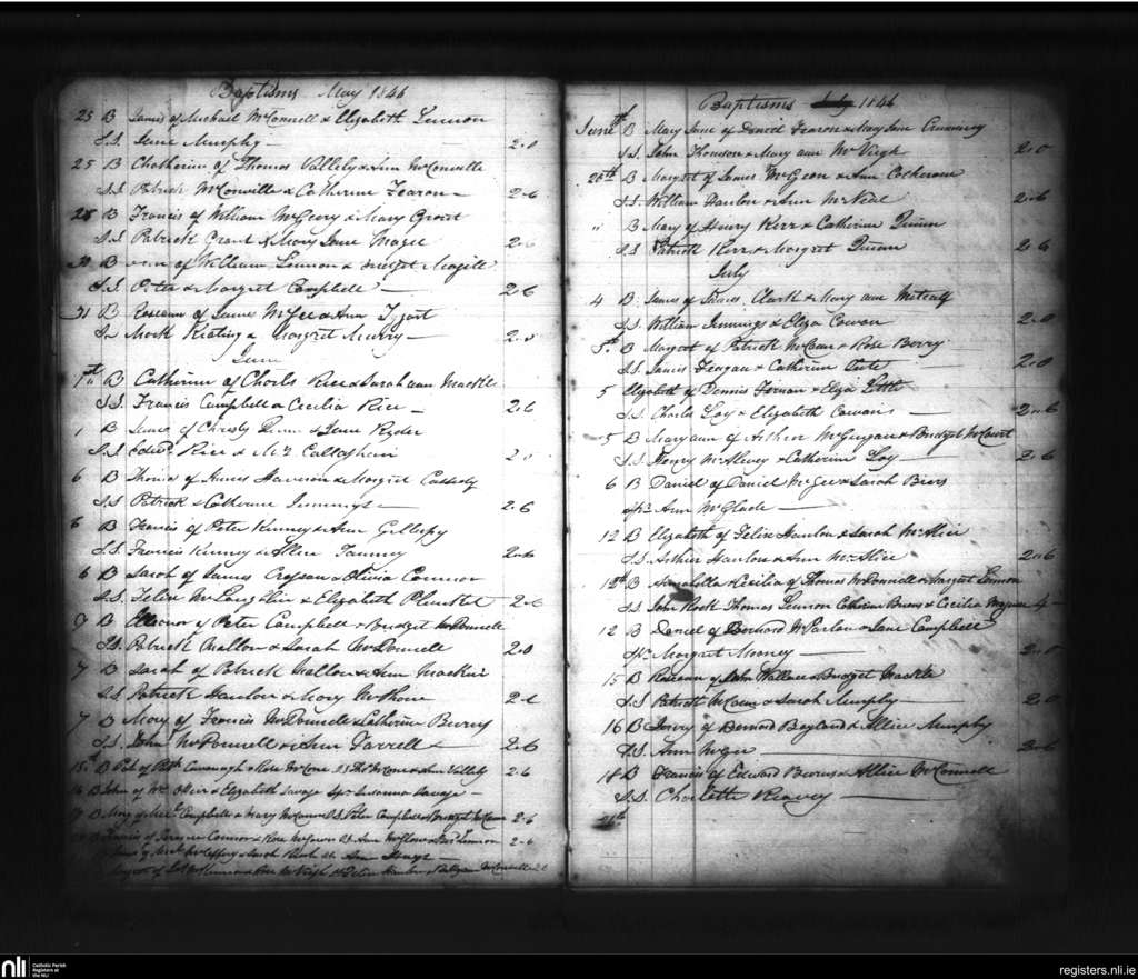 Ballymore and Mullabrack; County of Armagh; Archdiocese of Armagh. Baptisms, May 1846 to July 1846