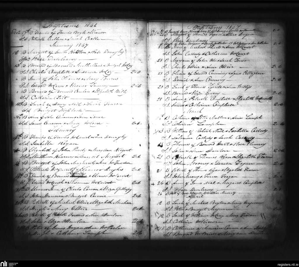 Ballymore and Mullabrack; County of Armagh; Archdiocese of Armagh. Baptisms, Dec. 1846 to Apr. 1847