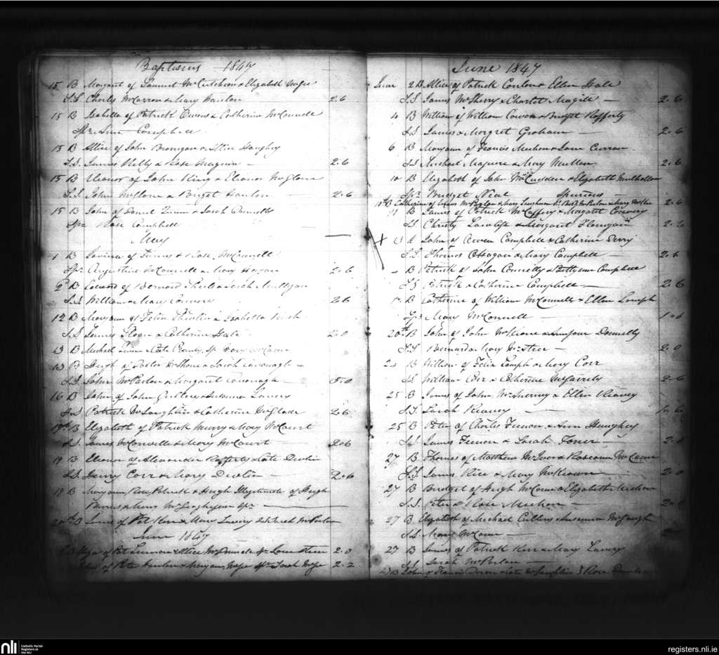 Ballymore and Mullabrack; County of Armagh; Archdiocese of Armagh. Baptisms, Apr. 1847 to June 1847