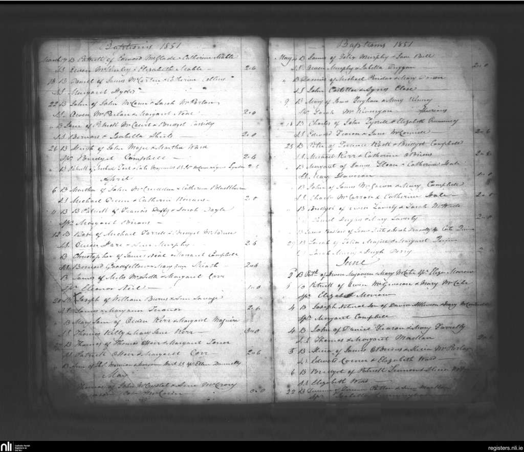 Ballymore and Mullabrack; County of Armagh; Archdiocese of Armagh. Baptisms, Mar. 1851 to June 1851