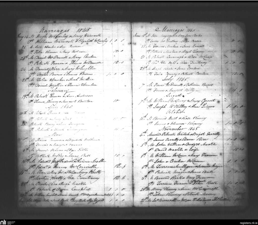 Ballymore and Mullabrack; County of Armagh; Archdiocese of Armagh. Marriages, Jan. 1845 to Nov. 1845
