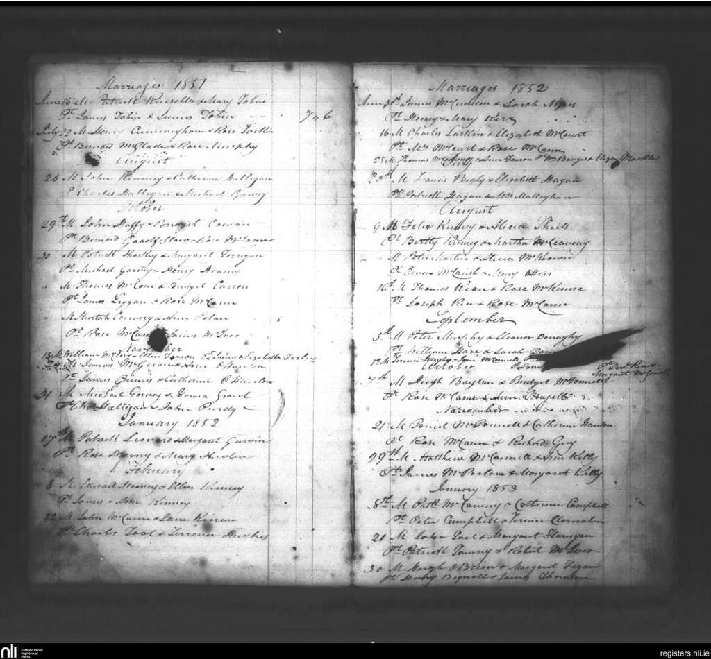 Ballymore and Mullabrack; County of Armagh; Archdiocese of Armagh. Marriages, June 1851 to Jan. 1853
