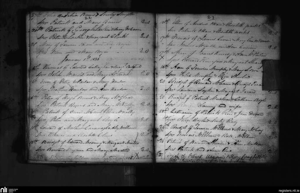 Killeavy Lower; County of Armagh; Archdiocese of Armagh. Baptisms, Dec. 1835 to Jan. 1836