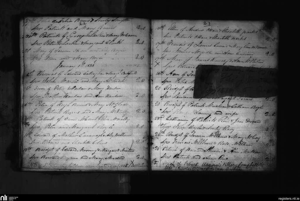 Killeavy Lower; County of Armagh; Archdiocese of Armagh. Baptisms, Dec. 1835 to Jan. 1836