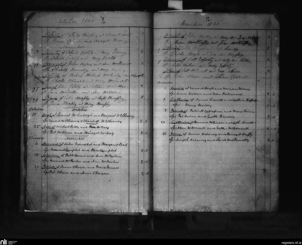 Killeavy Lower; County of Armagh; Archdiocese of Armagh. Baptisms, Oct. 1860 to Dec. 1860