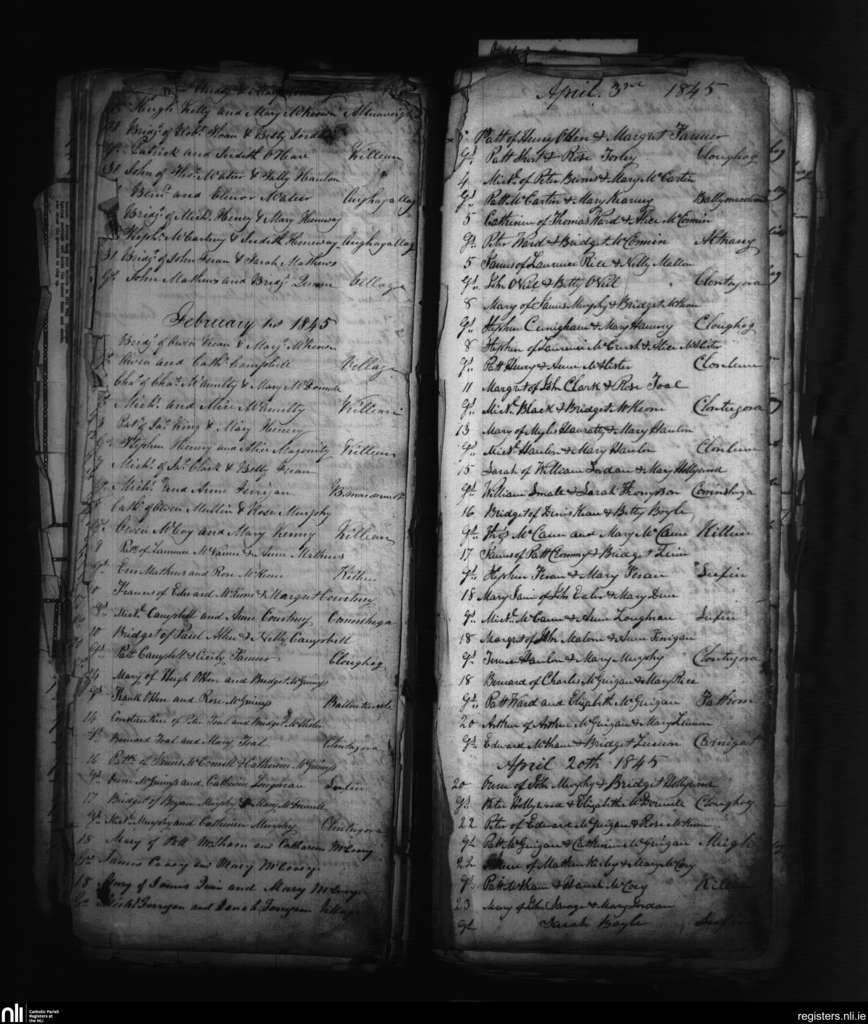 Killeavy Upper; County of Armagh; Archdiocese of Armagh. Baptisms, Feb. 1845 to Apr. 1845