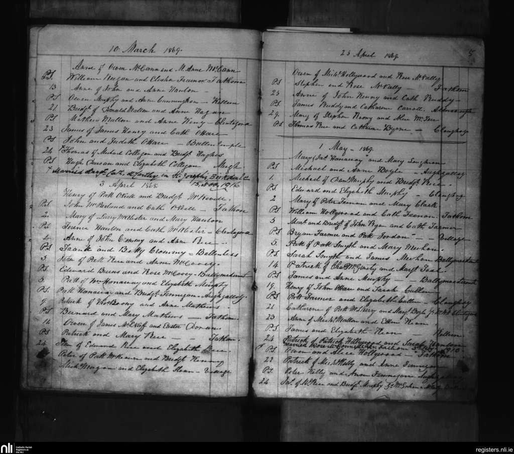 Killeavy Upper; County of Armagh; Archdiocese of Armagh. Baptisms, Mar. 1869 to May 1869