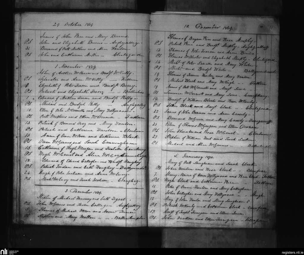 Killeavy Upper; County of Armagh; Archdiocese of Armagh. Baptisms, Oct. 1869 to Jan. 1870