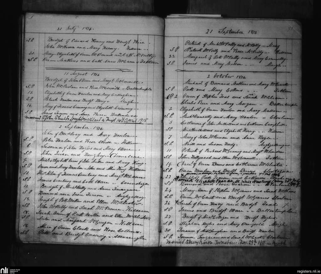 Killeavy Upper; County of Armagh; Archdiocese of Armagh. Baptisms, July 1874 to Oct. 1874