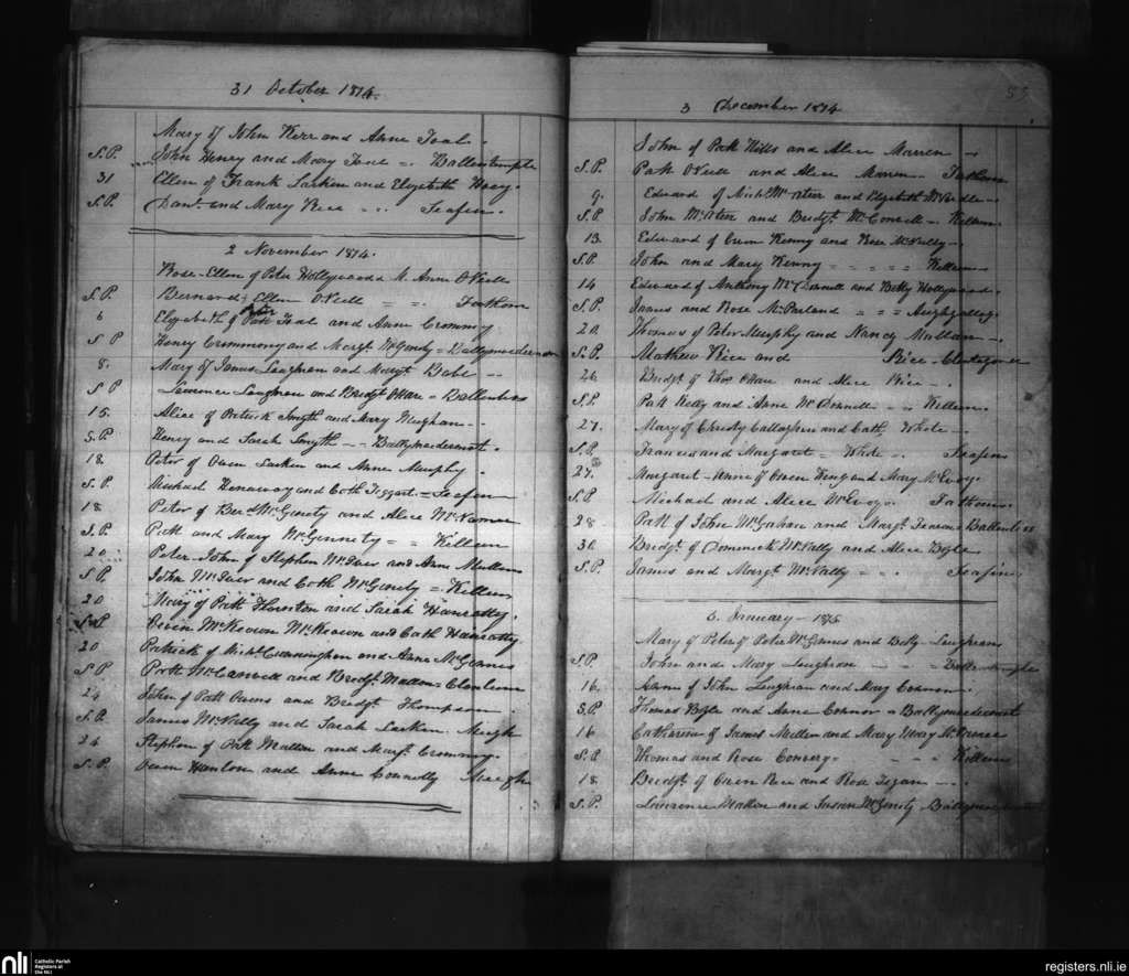 Killeavy Upper; County of Armagh; Archdiocese of Armagh. Baptisms, Oct. 1874 to Jan. 1875