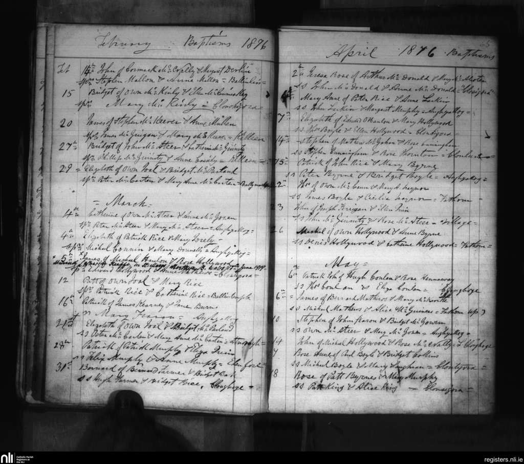 Killeavy Upper; County of Armagh; Archdiocese of Armagh. Baptisms, Feb. 1876 to May 1876