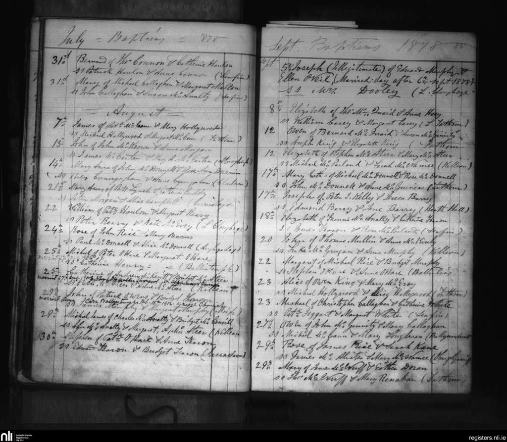 Killeavy Upper; County of Armagh; Archdiocese of Armagh. Baptisms, July 1878 to Sep. 1878