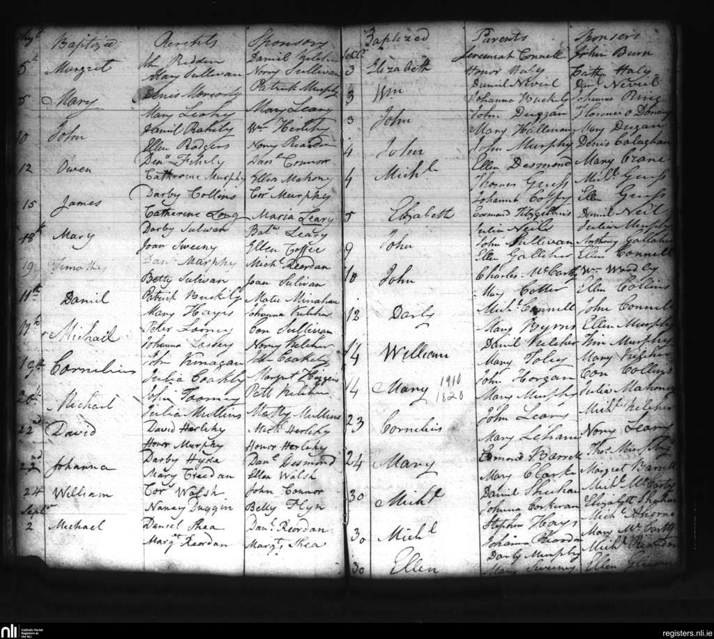 Aghabulloge; County of Cork; Diocese of Cloyne. Baptisms, Aug. 1821 to Sep. 1821