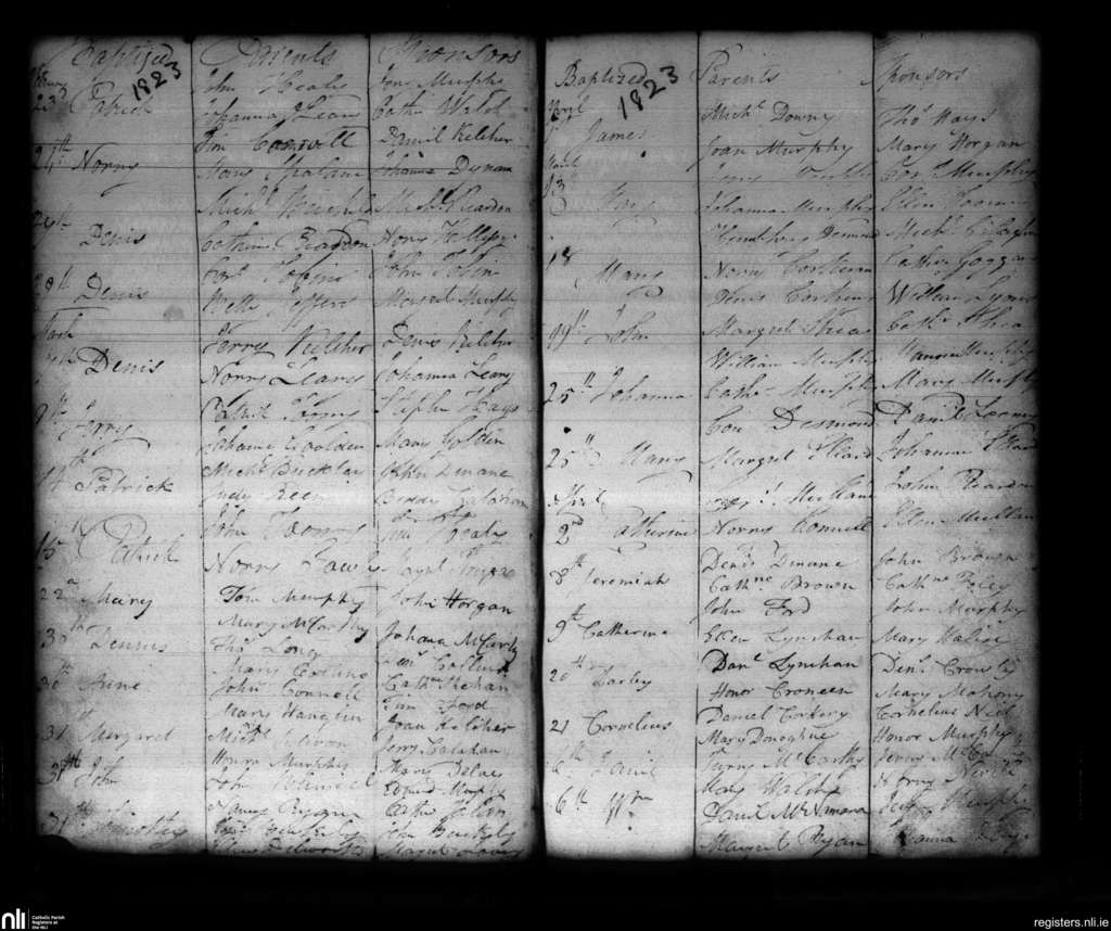 Aghabulloge; County of Cork; Diocese of Cloyne. Baptisms, Feb. 1823 to Apr. 1823