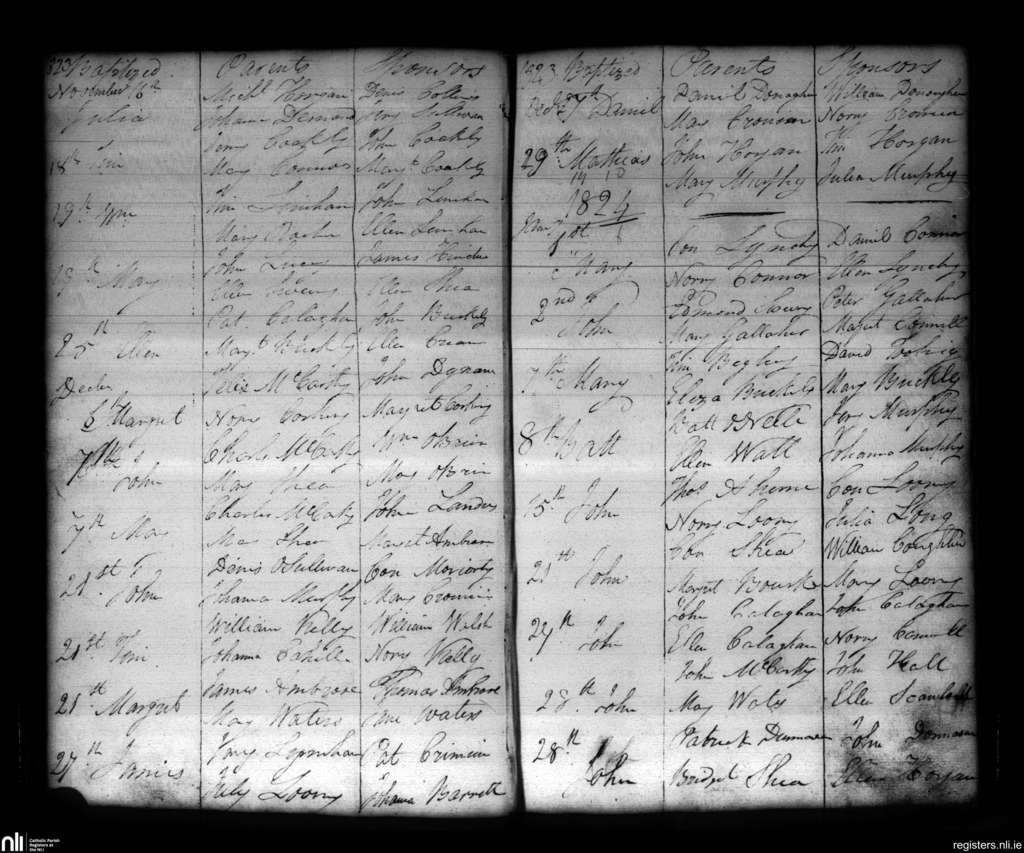 Aghabulloge; County of Cork; Diocese of Cloyne. Baptisms, Nov. 1823 to Jan. 1824