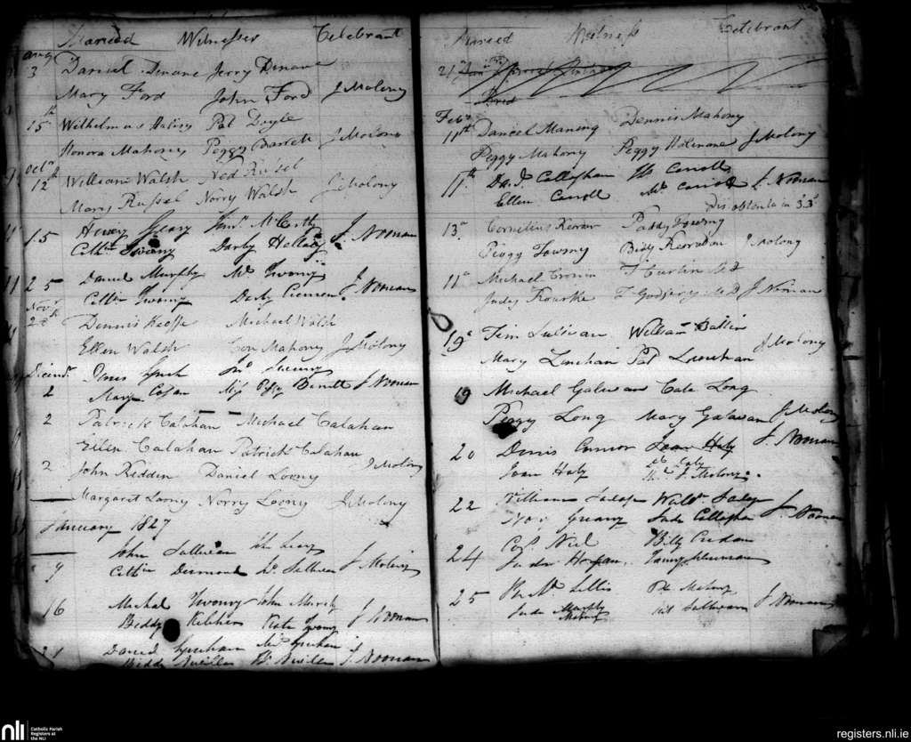 Aghabulloge; County of Cork; Diocese of Cloyne. Marriages, Aug. 1826 to Feb. 1827
