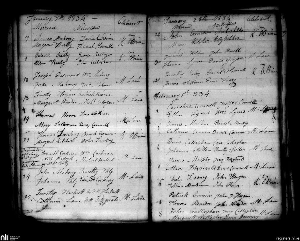 Aghabulloge; County of Cork; Diocese of Cloyne. Marriages, Jan. 1834 to Feb. 1834
