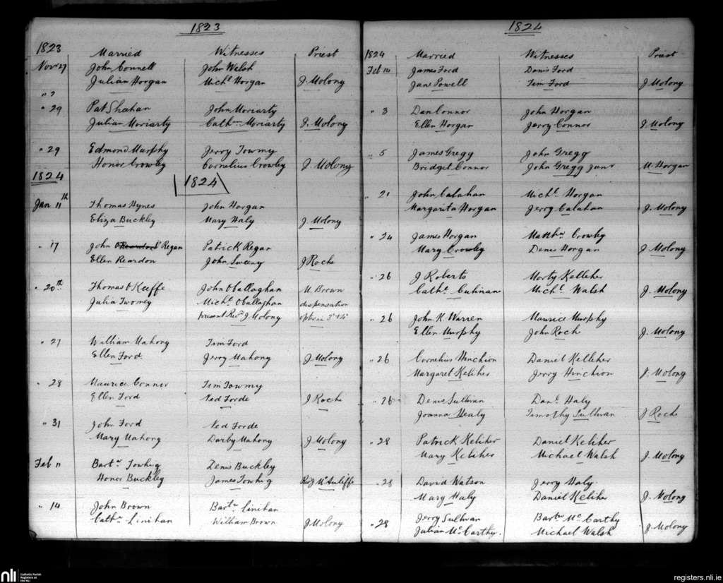Aghabulloge; County of Cork; Diocese of Cloyne. Marriages, Nov. 1823 to Feb. 1824